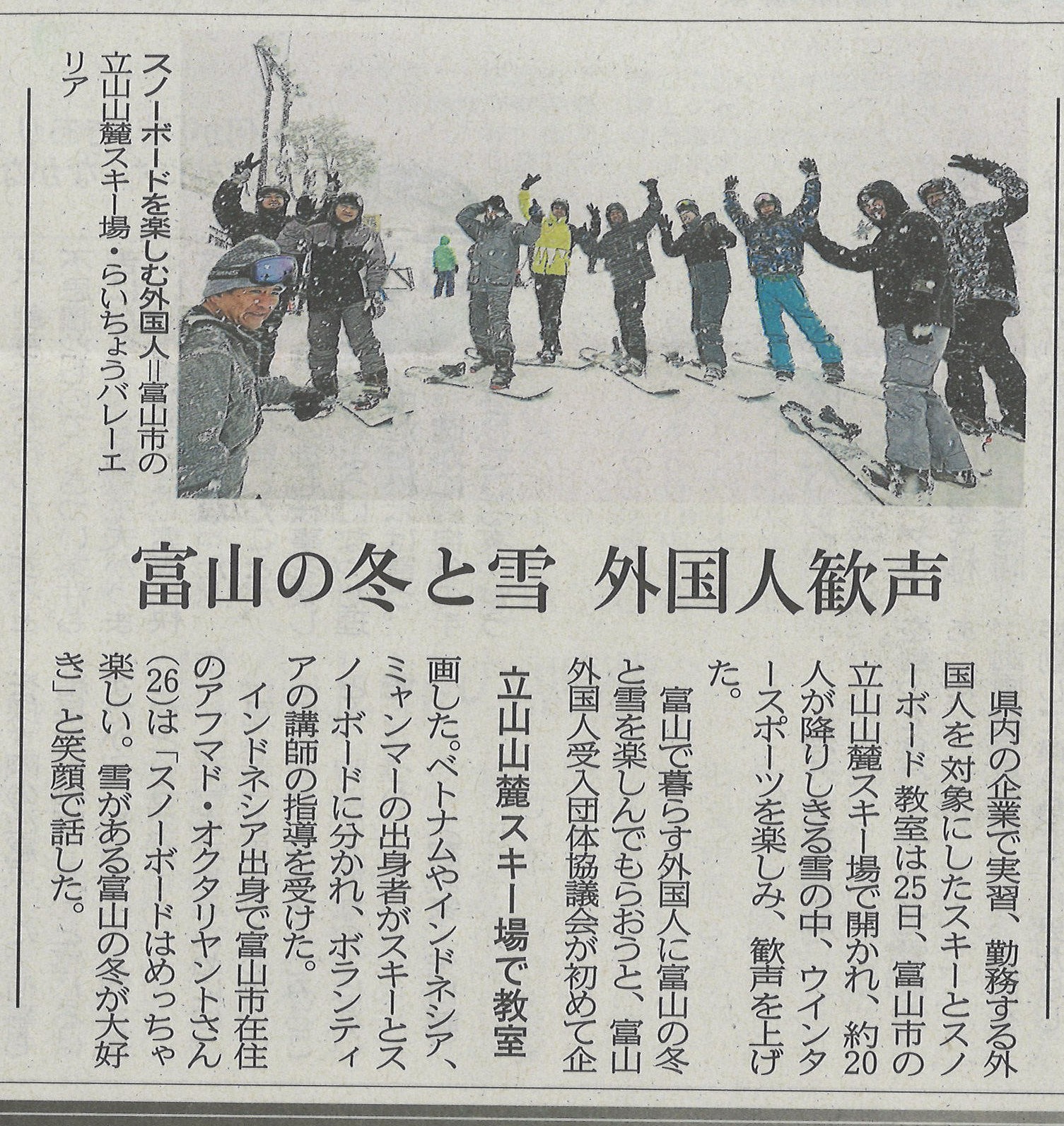 【メディア掲載】1月25日に開催したスキー&スノボ教室が新聞に掲載されました